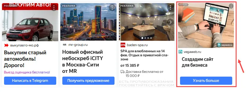 Ваше рекламное объявление демонстрируется исключительно целевой аудитории — тем пользователям, которые активно интересуются вашим продуктом именно в настоящий момент. Например, потенциальный клиент вводит в поисковик фразу «Создание сайта под ключ», и тут же перед ним появляется ваша реклама. Это обеспечивает максимальный охват заинтересованных пользователей, позволяя увеличить конверсии и сократить расходы на неэффективные показы. Благодаря такому точечному таргетингу ваши рекламные объявления достигают тех покупателей, которые наиболее близки к совершению покупки вашего товара или услуги.