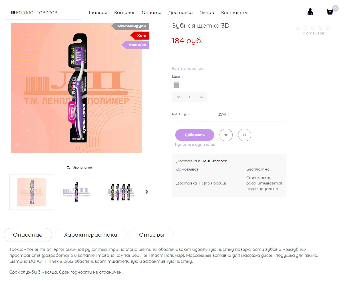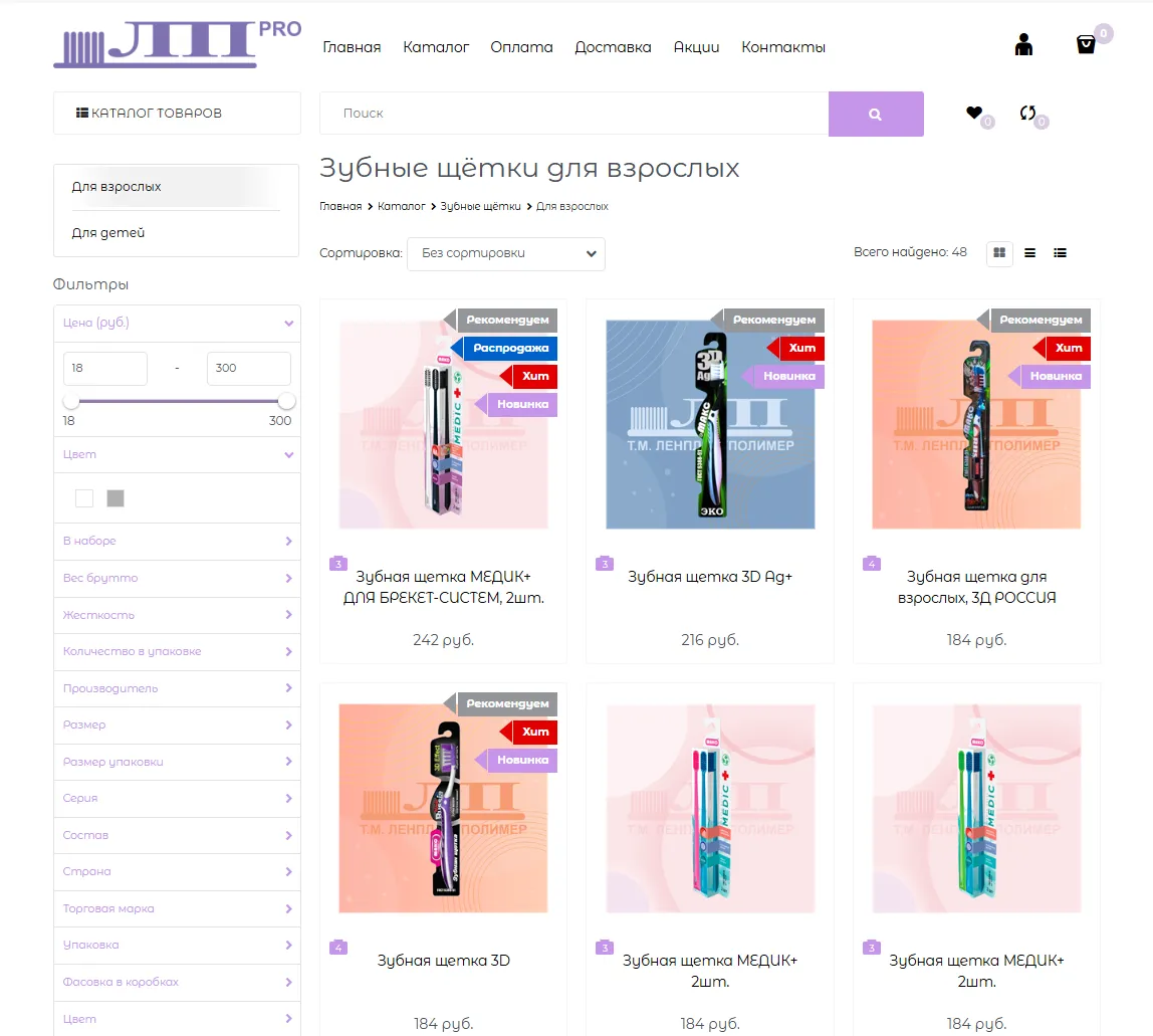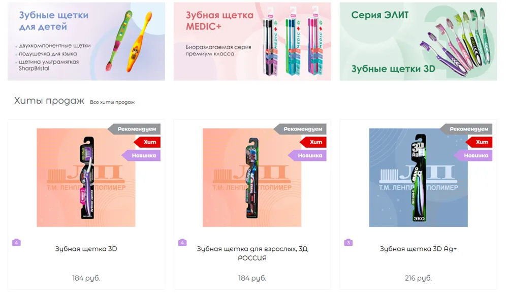 ООО Производственное объединение «ЛЕНПЛАСТПОЛИМЕР» занимается изготовлением качественной продукции для ухода за ротовой полостью, ориентируясь на современные стандарты стоматологической индустрии, предоставляют широкий выбор изделий повседневного спроса. Заказчик обратился в нашу студию, с задачей изготовить интернет-магазин с удобным интерфейсом, каталогом, отдельным личным кабинетом посетителя, удобной фильтрацией и возможностью оплаты онлайн, для активного продвижения своей продукции в интернете.